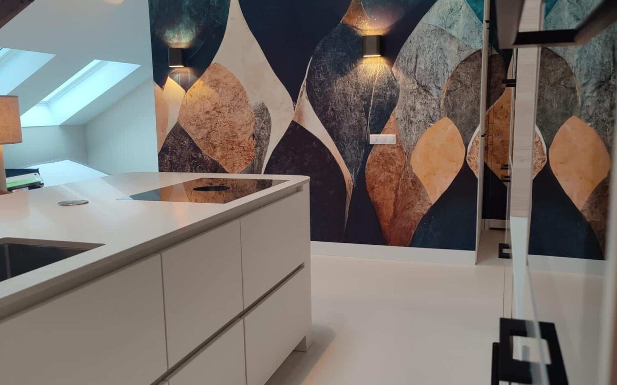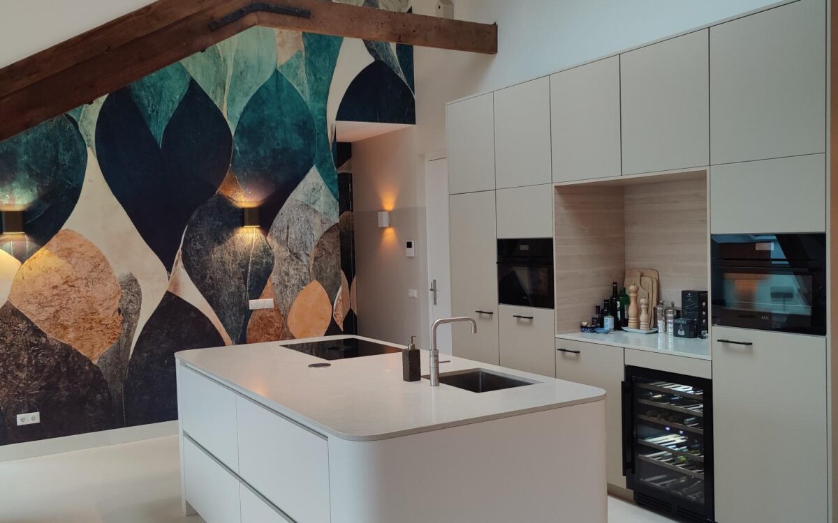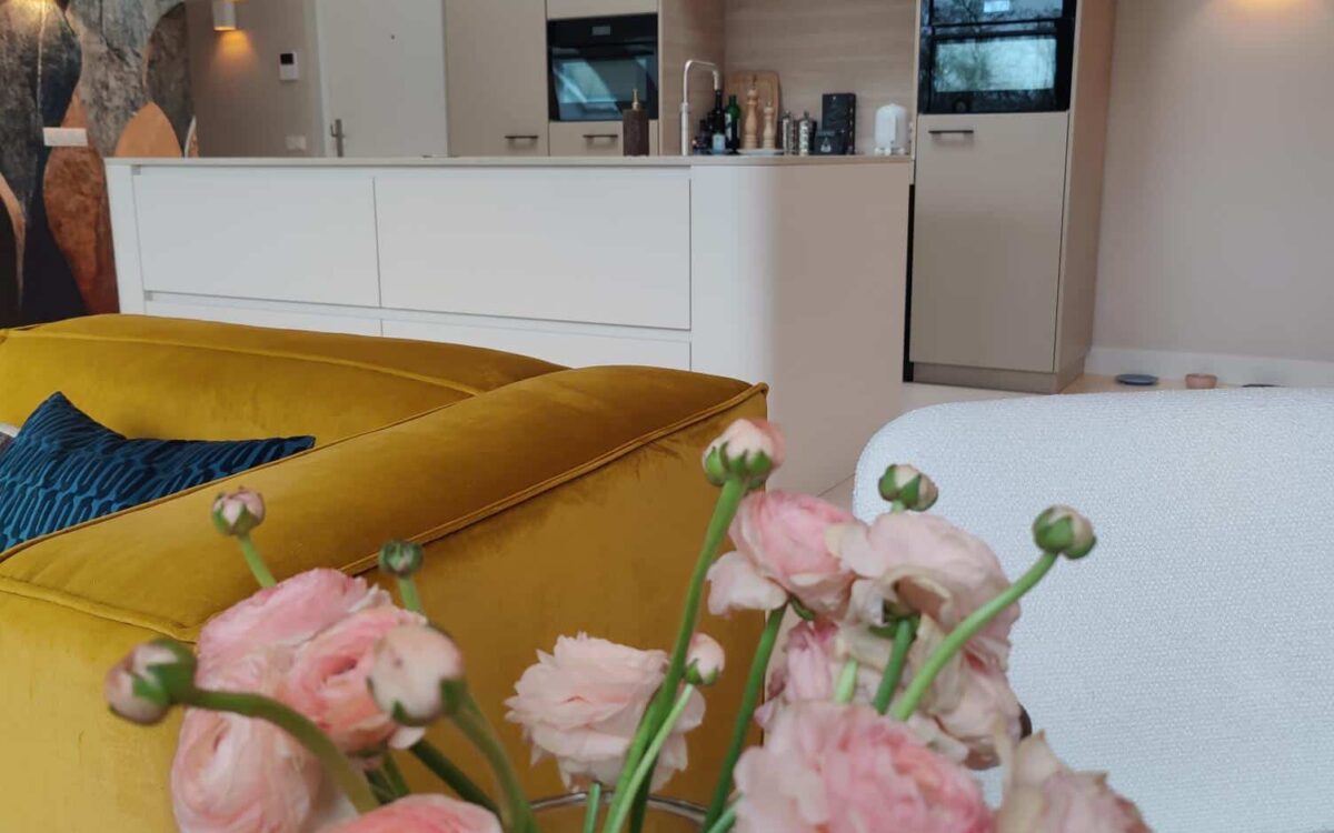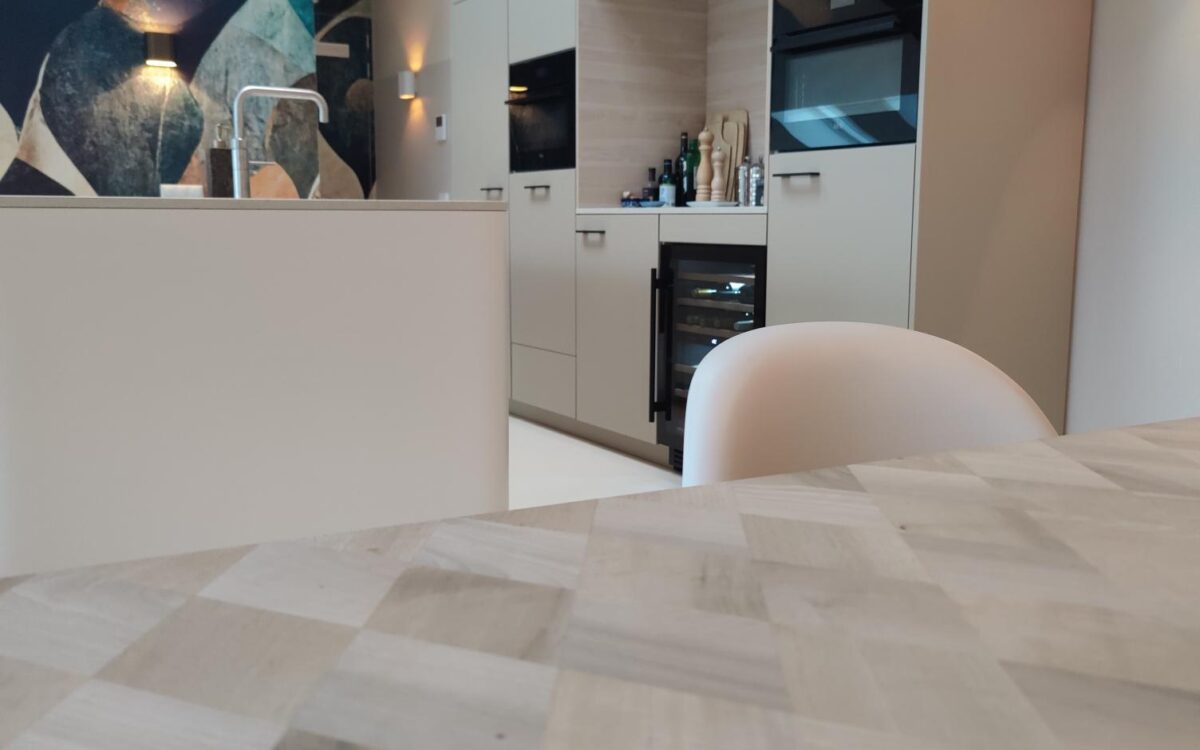 De lichte kleuren zorgen voor een heldere en open sfeer. Het is een plek waar functionaliteit en esthetiek naadloos samenkomen en die de leefruimte in dit prachtige appartement echt tot leven brengt.