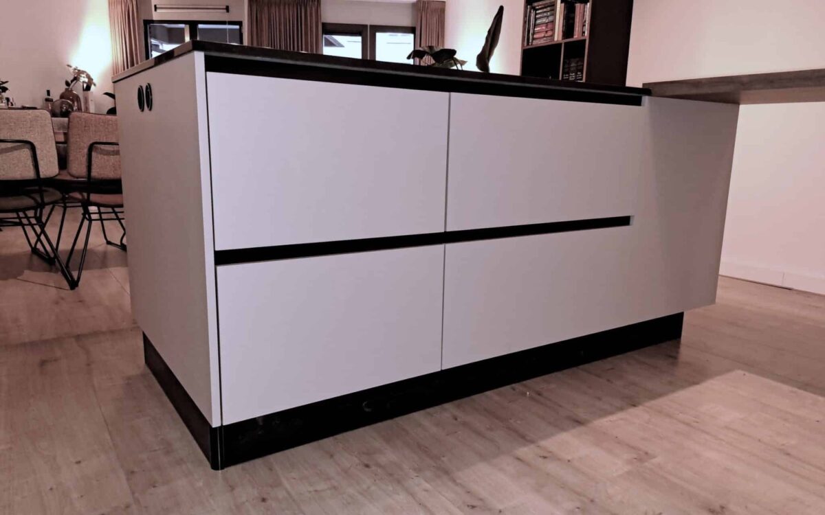 Een bijzonder detail in deze keuken is het nisje in de wandkast, dat veelzijdigheid toevoegt aan de ruimte. Of het nu wordt gebruikt als een knusse koffiecorner om 's ochtends te genieten van een heerlijke kop koffie, of als een plek om decoratieve accenten toe te voegen die de ruimte verrijken, deze nis voegt een persoonlijk tintje toe aan de keuken.