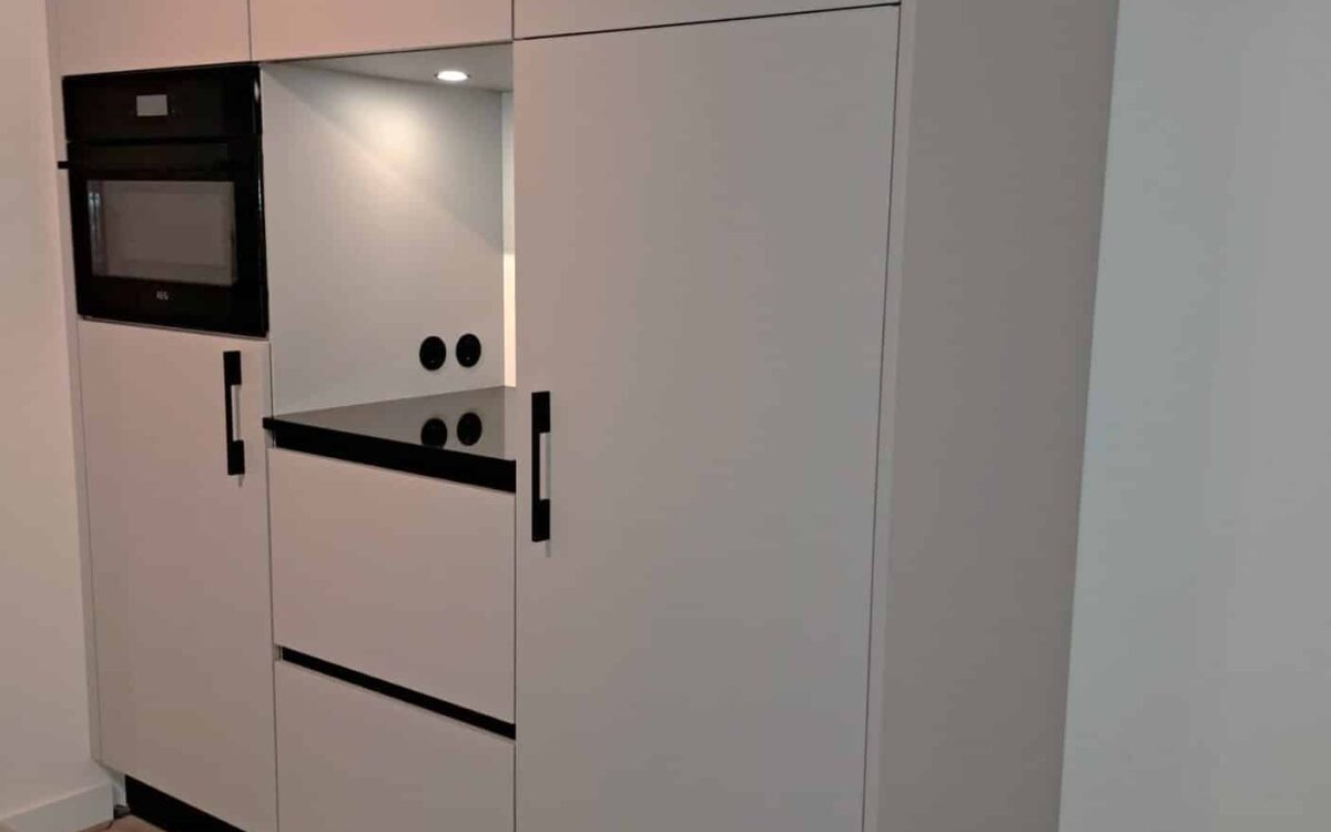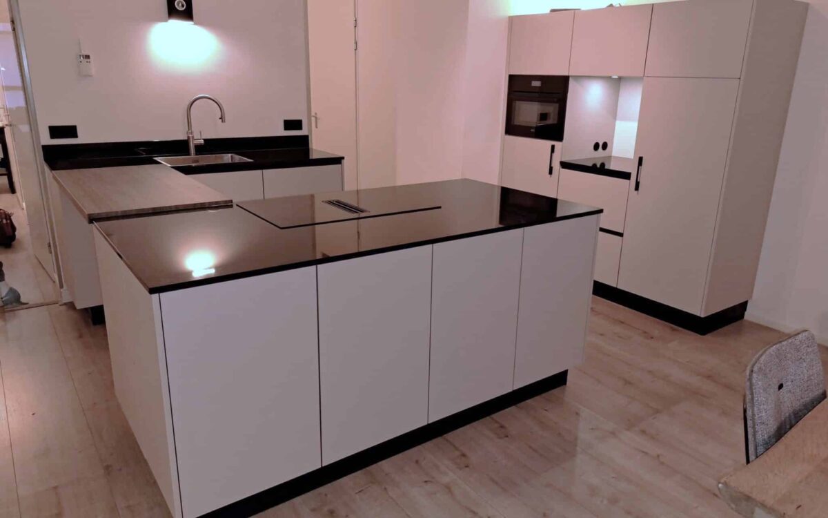 Welkom in deze moderne en elegante keuken, waar stijl en functionaliteit hand in hand gaan. Met een compact ontwerp dat toch alle gemakken biedt, is dit de perfecte ruimte voor culinaire avonturen en gezellige momenten.